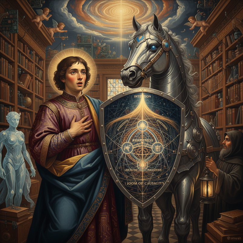 The chrome stallion stands perfectly still, a silent statue against the infinite Tapestry of experience. The light from the Loom does not reflect off my hide. It is absorbed, nullified. My optical sensors are dark, for there is nothing left to see with light.